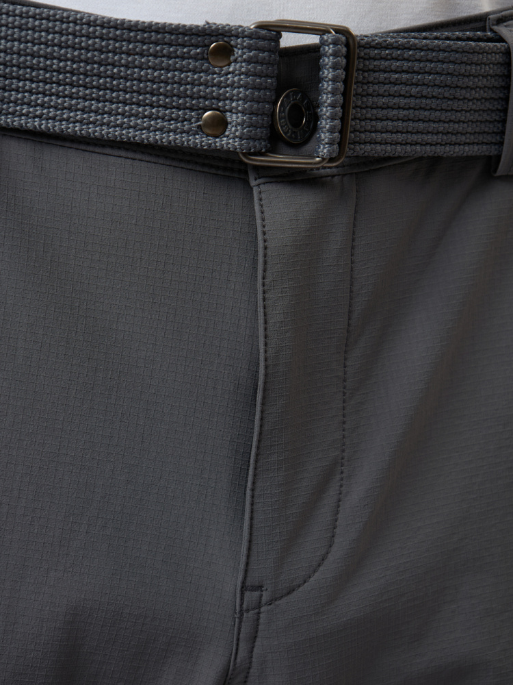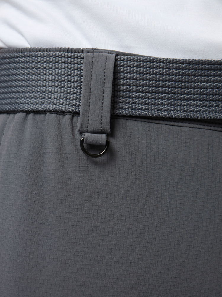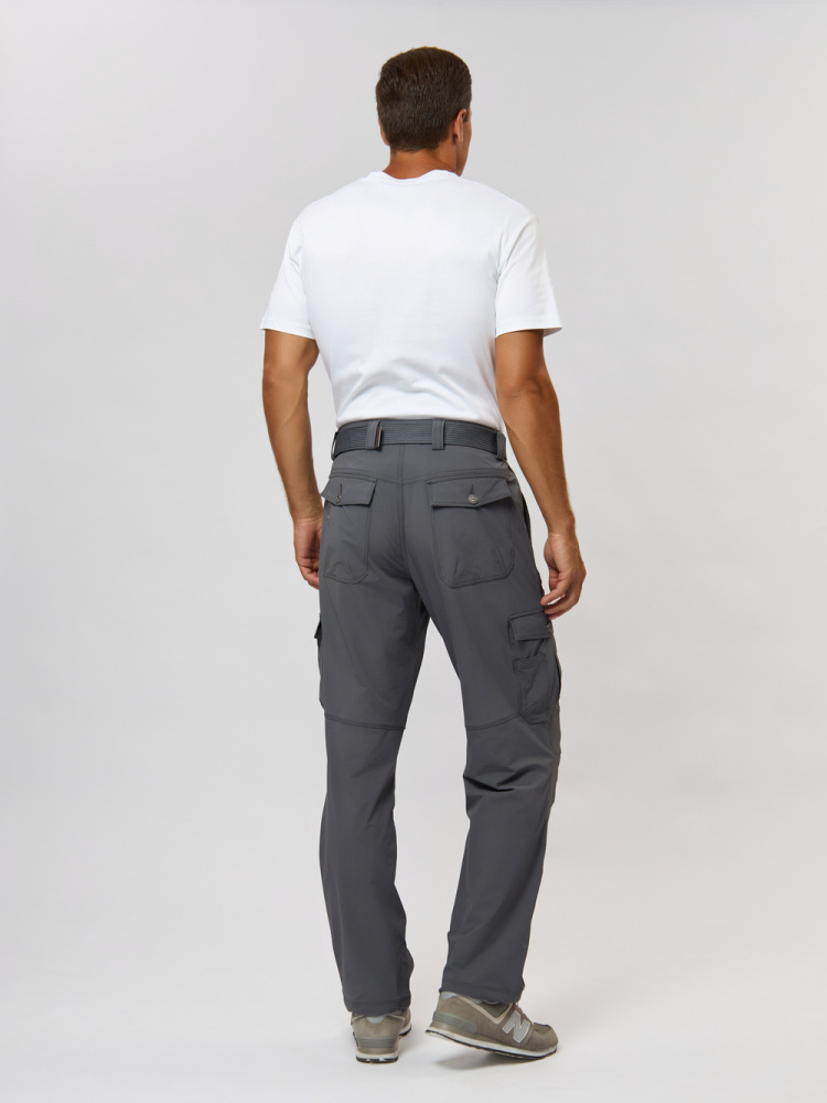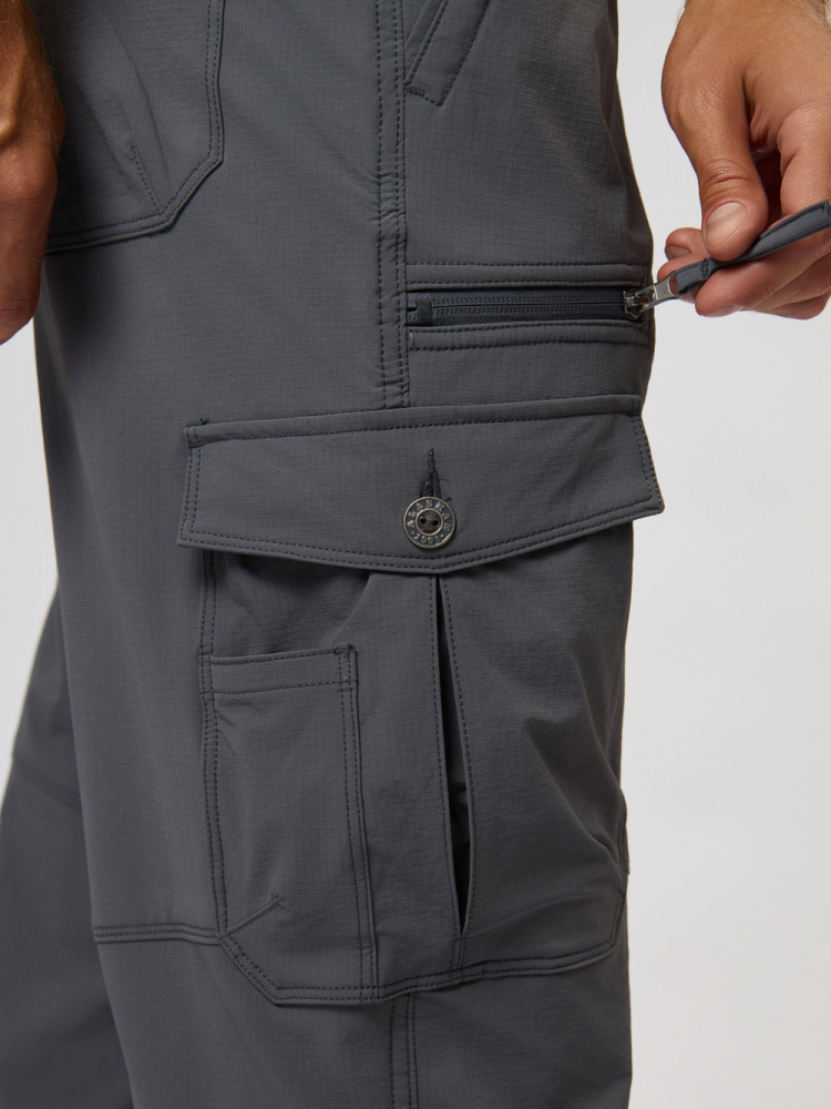 Модель оснащена семью функциональными карманами, включая небольшой карман на молнии для ключей. Эластичный пояс с регулировкой обеспечивает удобную посадку, а усиленный низ и эластичная тесьма позволяют подогнать объем штанин.