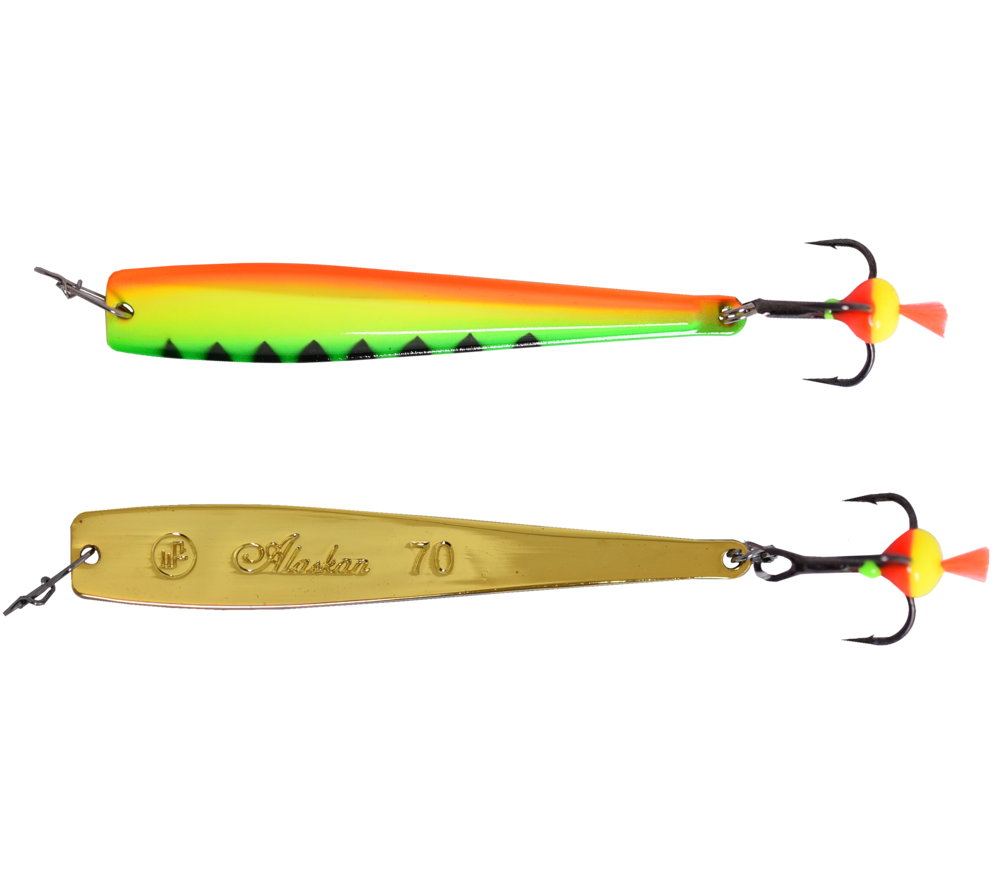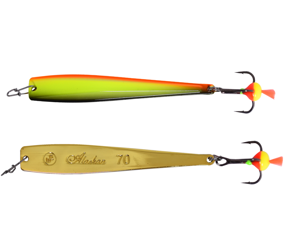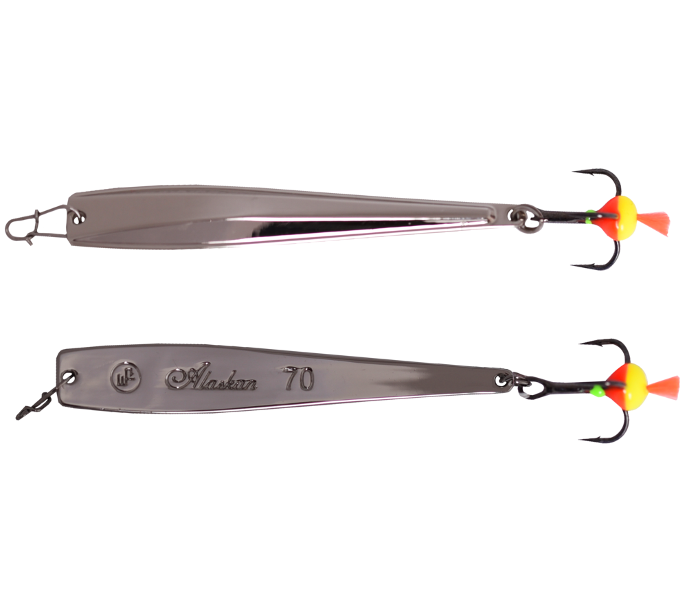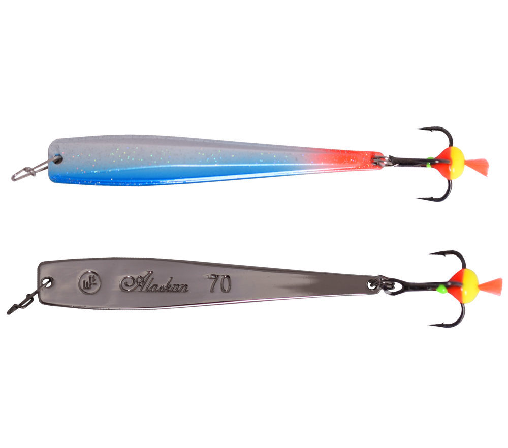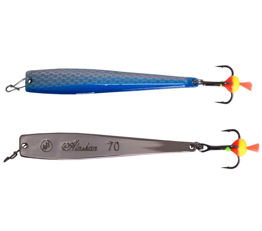 Блесна Alaskan - это приманка, обладающая «планирующей» игрой с далеким уходом от вертикальной оси на падении. Блесны небольших размеров отлично подходят для ловли окуня, а приманки больших размеров используются при ловле судака и крупного окуня на глубоких водоемах. Сделаны на крючках Saikyo (Япония).