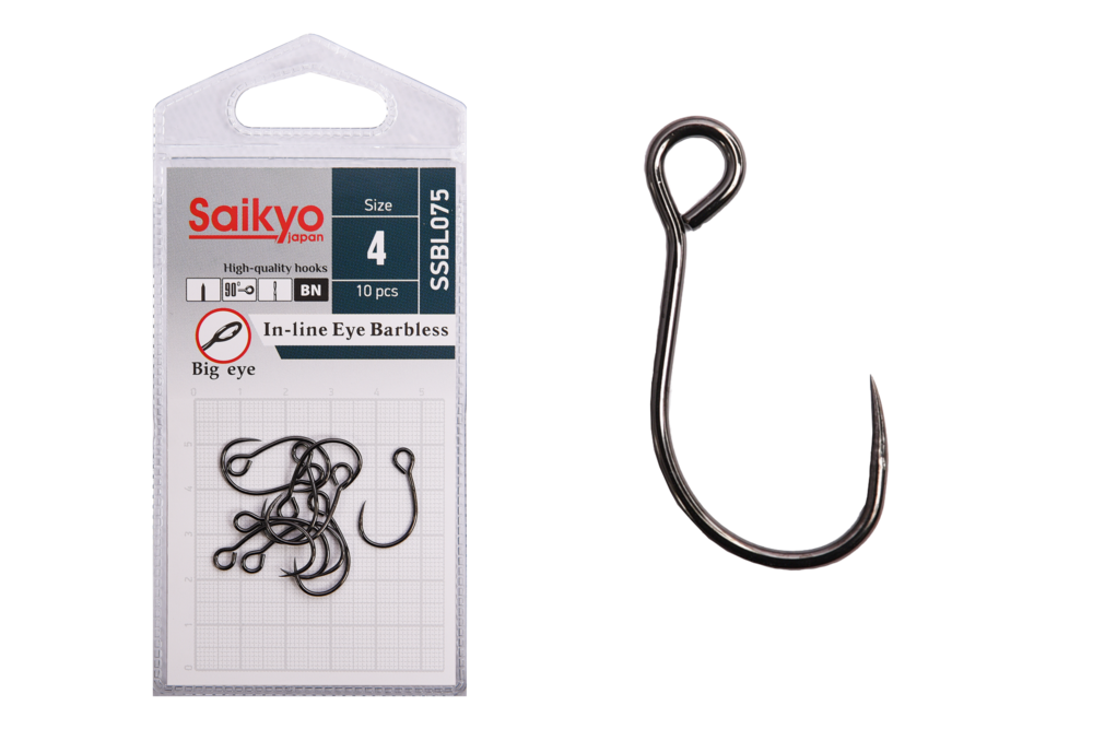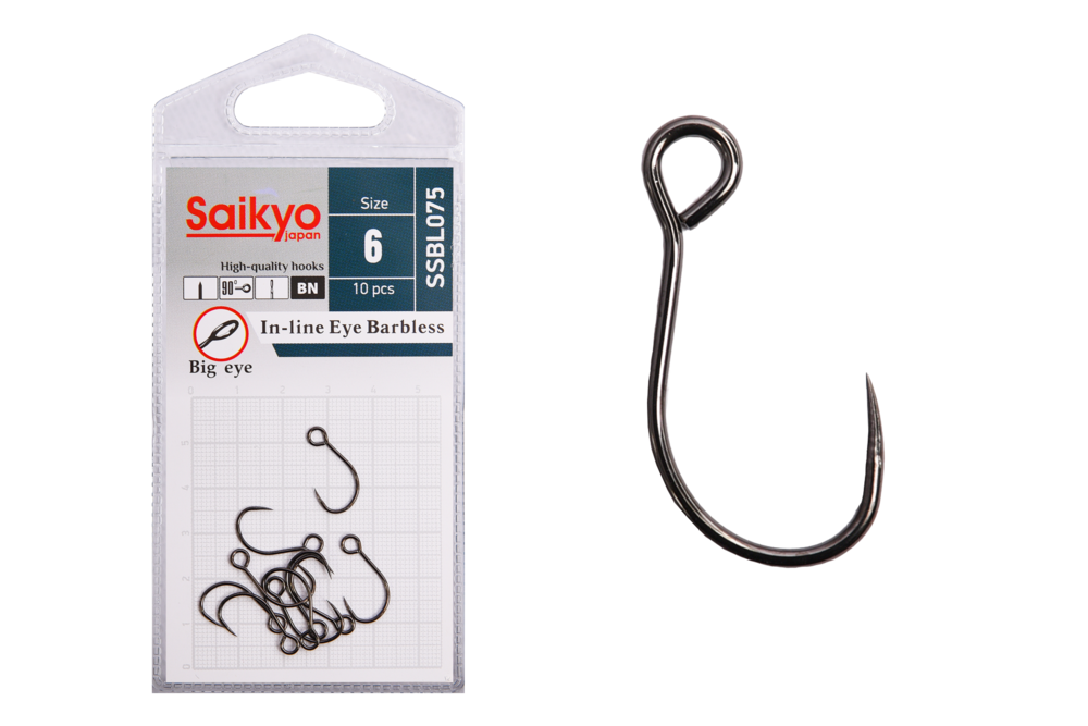 Мощные крючки без бородки с развернутым ушком для оснащения воблеров, блёсен и прочих приманок. Отсутствие бородки позволяет меньше травмировать рыбу, что особенно важно при ловле по принципу «поймал-отпустил», в том числе для спортивной рыбалки. Толстая проволока, средней длины цевье, жало отогнуто внутрь.