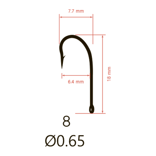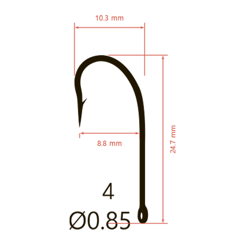 Крючок с удлиненным цевьем. Увеличенная бородка. Средняя толщина проволоки. Особый загиб шейки крючка, позволяет избежать схода трофея. Удобно использовать насадку в виде пучка мотылей или червей. Подходит для использования в соленой воде.