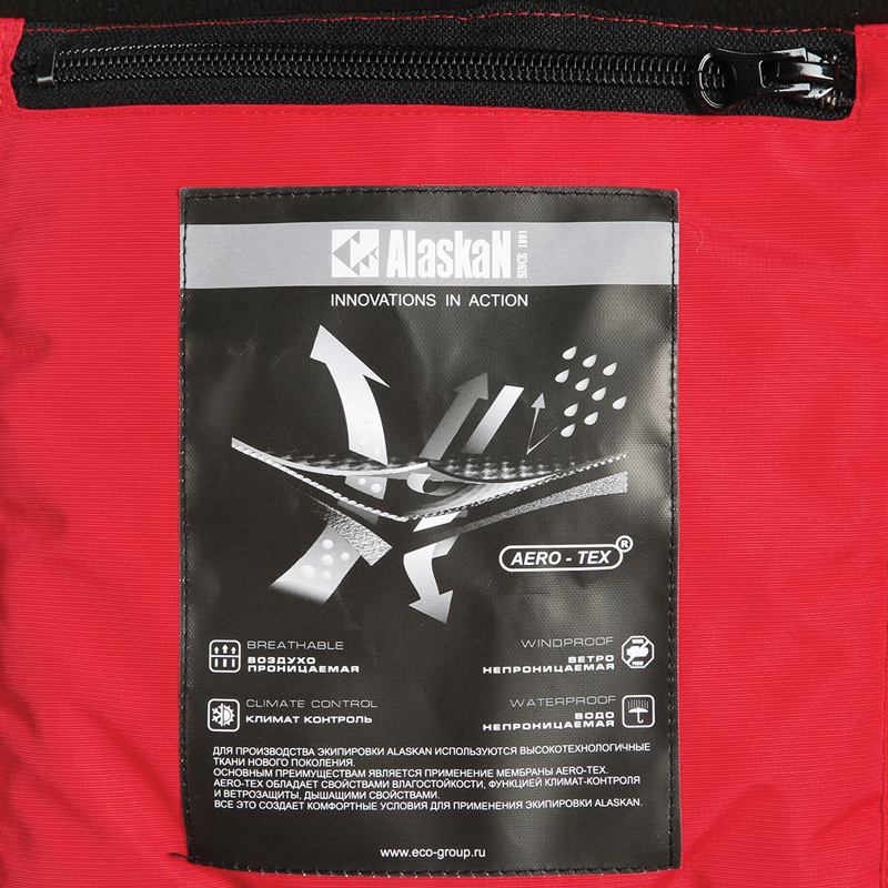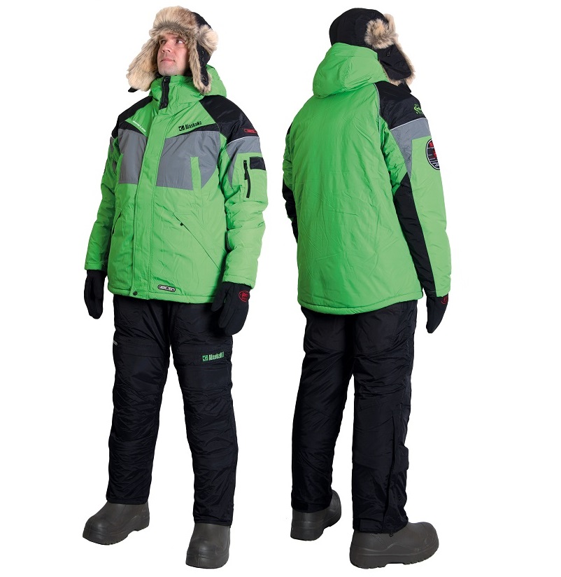 Теплый, легкий (2,8 кг), непродуваемый, костюм спортивного дизайна изготовлен из непромокаемой ткани с мембраной AERO-TEX, предназначен для рыбалки в сырую, холодную погоду до -30 С. Все швы проклеены.